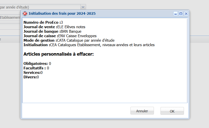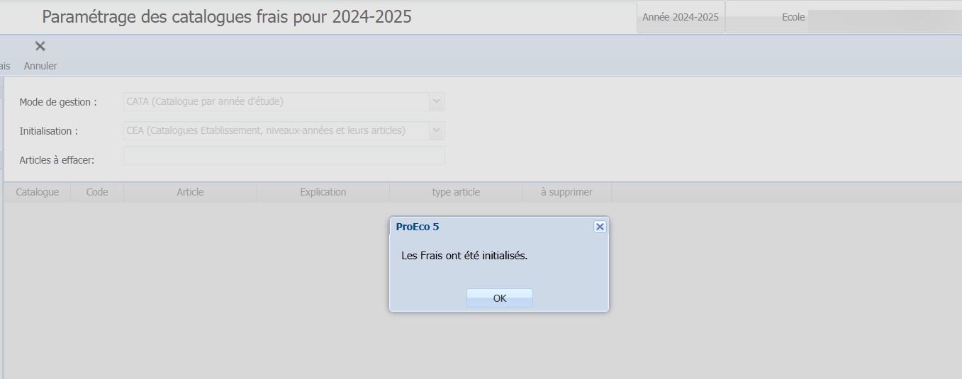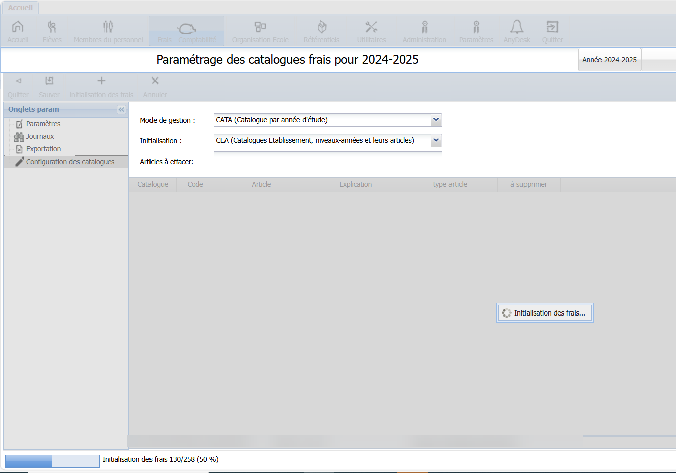 Les frais sont initialisés pour l'année scolaire en cours. Il faudra réaliser l'initialisation des frais au début de chaque année scolaire.