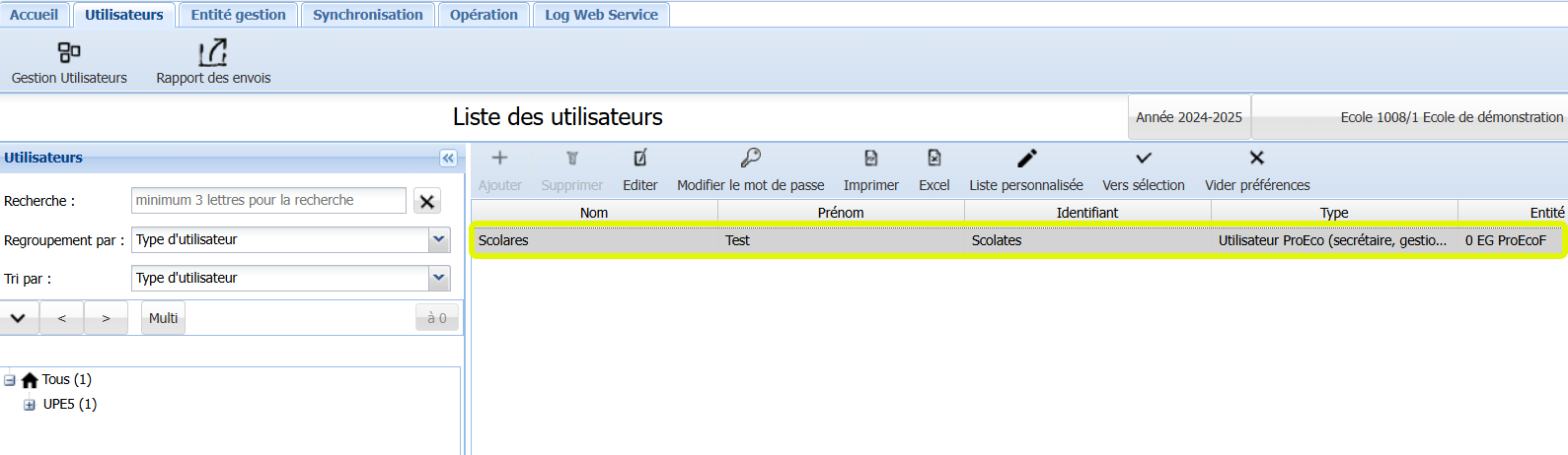 C’est le module Gestion Utilisateurs qui s’ouvre par défaut.