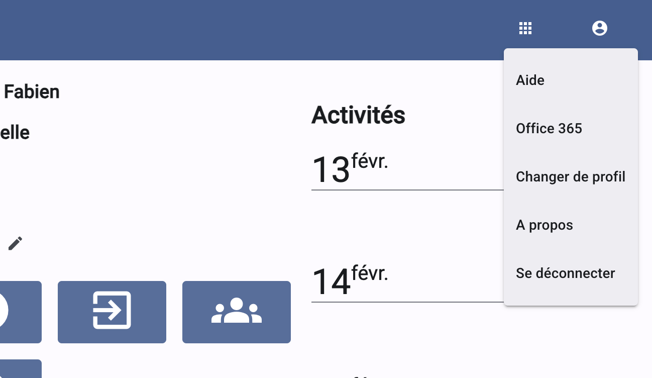 ✅ Une fois cela fait, vous pourrez vous connecter à Cabanga, ou passer d'une école à l'autre, avec le bouton "Changer de profil" qui se trouve au-dessus à droite dans l'application.