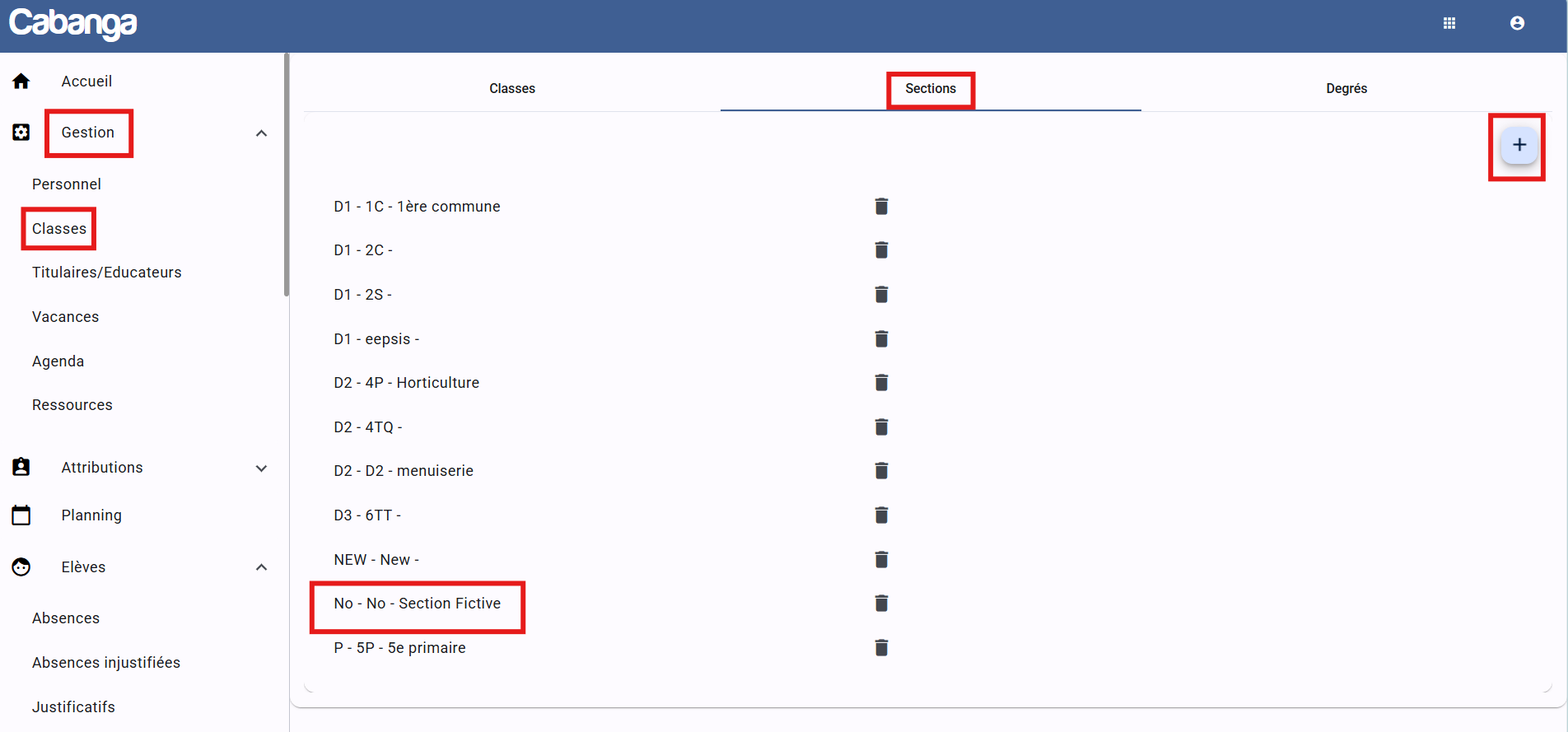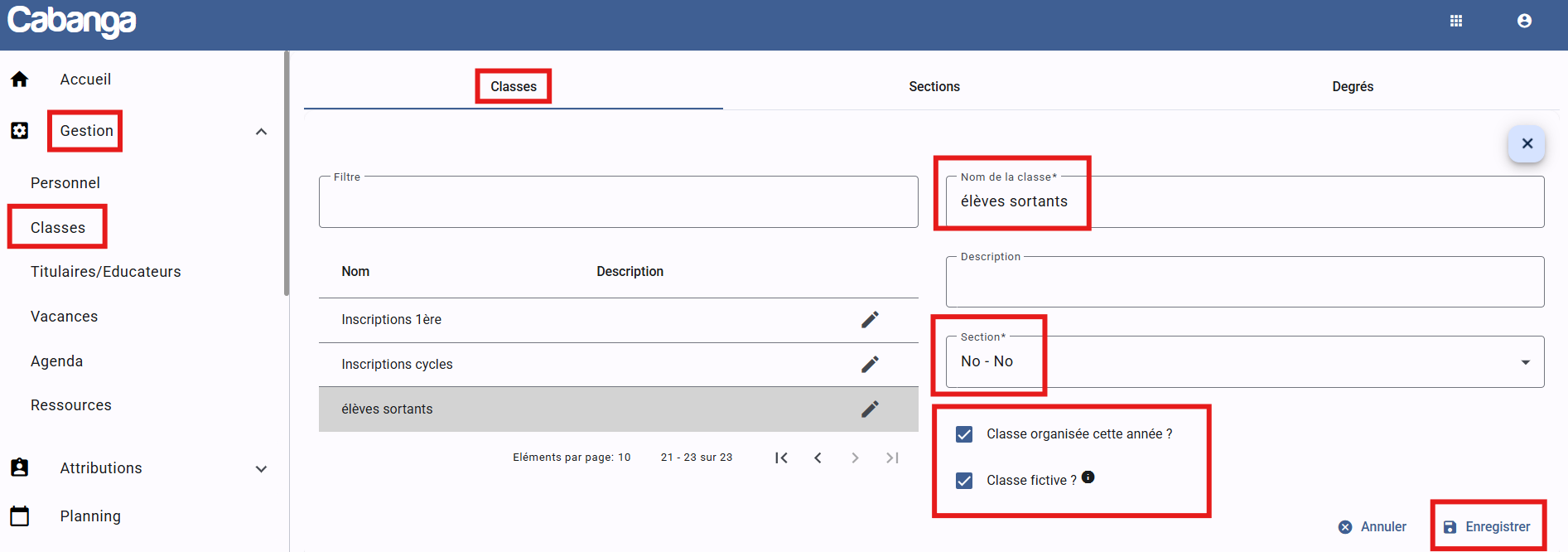 - Rendez-vous dans la section "Gestion - Classes".