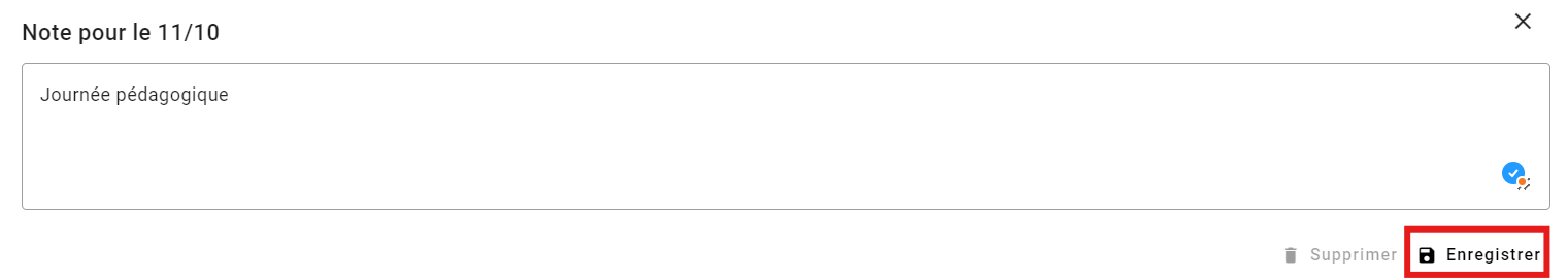 Vous pouvez également encoder une information pour la journée entière (excursion, ...) en cliquant sur la date en en-tête de colonne.