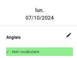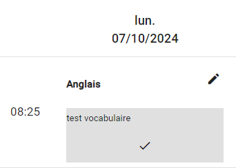 Les élèves peuvent marquer un devoir, une préparation comme faite en cochant le "V" afin de voir où ils en sont dans leur travail de la semaine. Cela sera visible par leurs parents.
