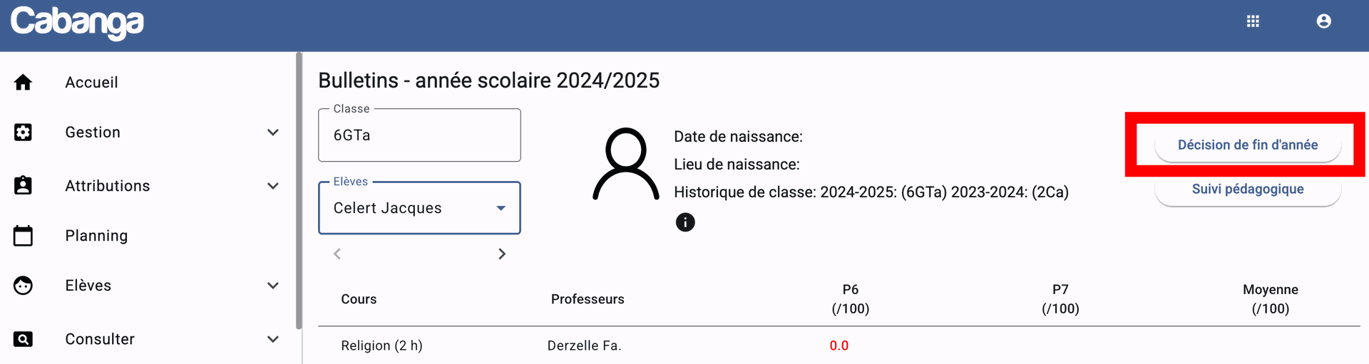 2. Via la page Bulletins / Décisions de fin d'année