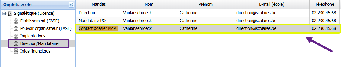 1.2.3. Contact dossier Mdp dans "Direction/Mandataire"