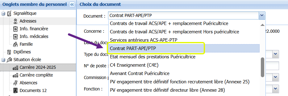 Deux nouveaux documents ont été ajoutés à la liste des documents officiels des membres du personnel : les contrats PTP et PART-APE :