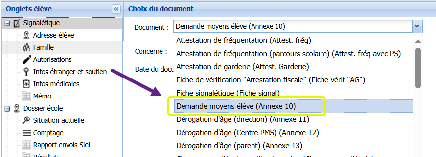 Dans le module Élèves, il y a désormais la « Demande de moyens humains supplémentaires pour un élève à l’issue d’une prise en charge en application de l’article 1.7.1-48 du Code de l’enseignement (annexe 10) » :