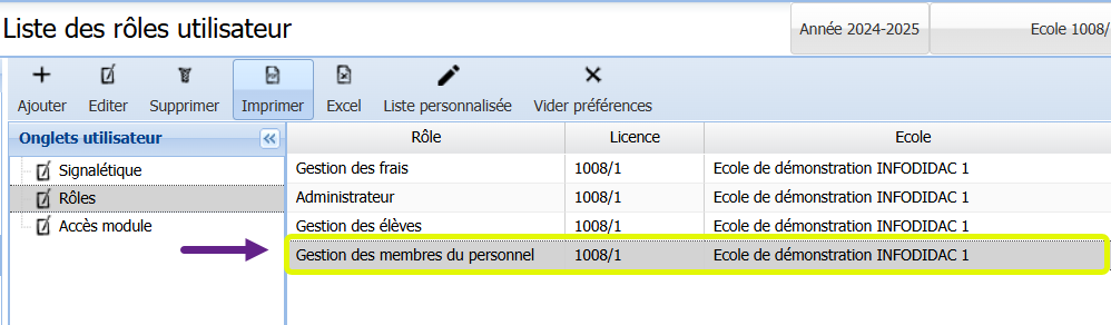 1. Rôle Gestion des membres du personnel