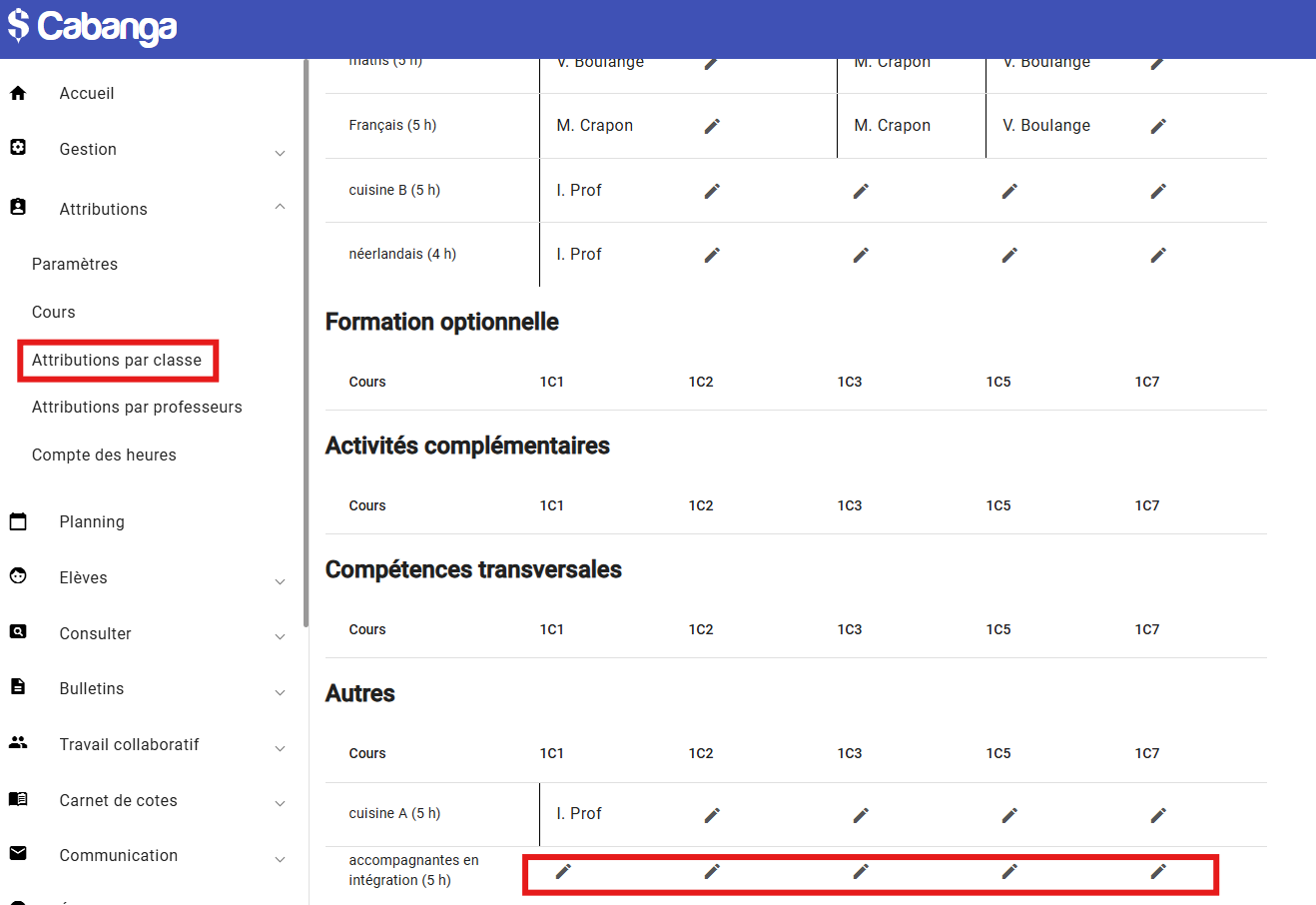 Attribuez ce cours à la bonne personne dans la page Attributions / Attributions par classe.