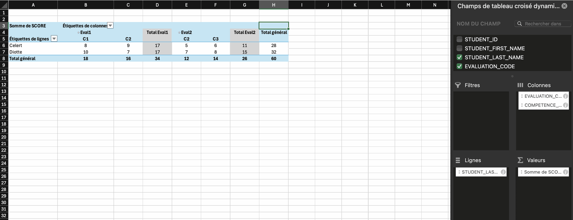 Mettez en forme le tableau si besoin et vous avez la même vue que dans l'application à peu de choses près.