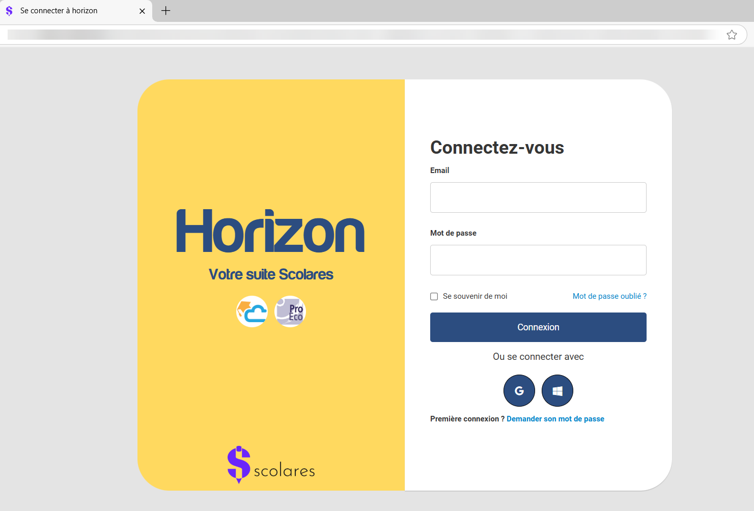 Pour aller sur la page de connexion d’Horizon, vous insérer l’URL suivante dans votre barre de navigation : https://proeco.scolares.be