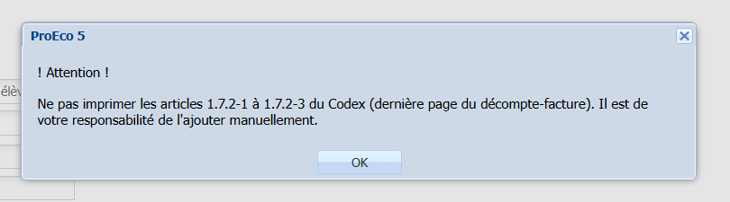 Si vous confirmez, les articles 1.7.2-1 à 1.7.2-3 du Codex seront retirés du fichier du décompte-facture généré par ProEco5.